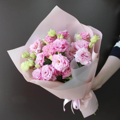 Розовые лизиантусы в стильной упаковке